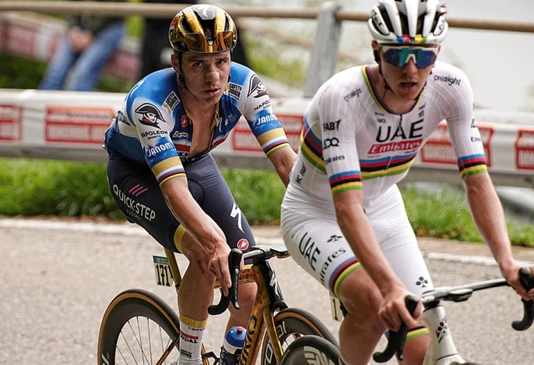 Evenepoel lo supera, Pogacar sigue con la vista en el arcoíris.
