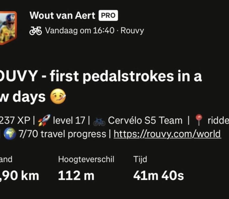 Van Aert reapareció en Strava acompañando su salida con un sencillo emoji de termómetro. Sutil, pero claro: no ha sido su mejor semana. Ese parón, incluso breve, pesa mucho cuando el margen es tan estrecho. Aun así, el belga mantiene su plan inicial y confía en tener tiempo suficiente para afinar sensaciones.